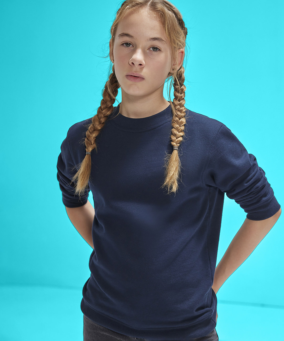 Meet the unmatched modern classic for kids. This unisex crew neck sweatshirt, for boys and girls, from kids to teens, with a comfortable dropped shoulder for ease of movement, will withstand any wear and tear! Its made from soft, durable 100% cotton face fabric for excellent printability and is neck-label-free for easy customisation.