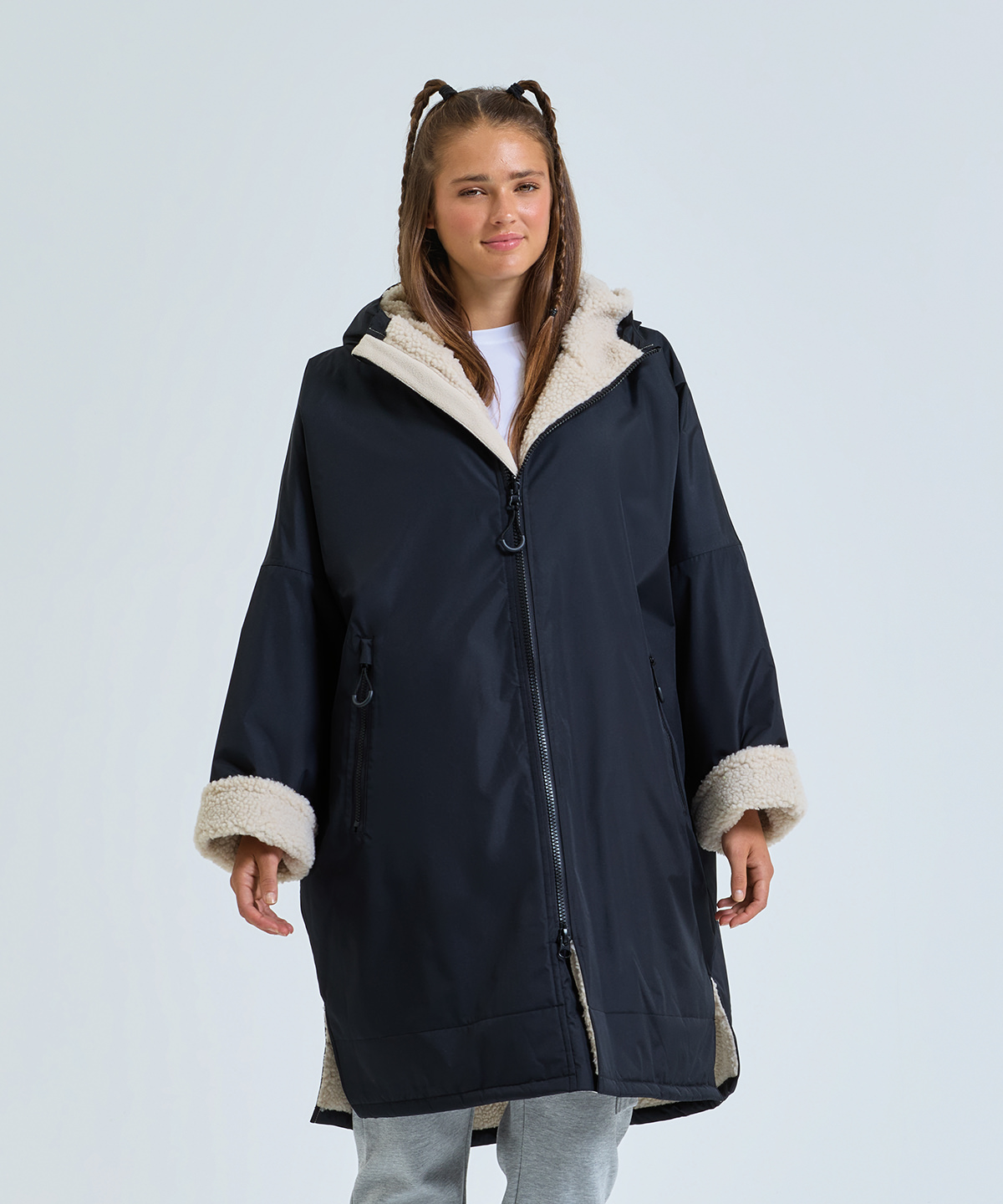 TriDris latest outerwear is essential in everyones wardrobe! The TriDri® All-seasons waterproof changing robe boasts a waterproof exterior with hood to keep you dry, as well as adjustable straps to the wrists and chin guard to help lock in heat on windy days. The cosy sherpa fleece interior absorbs moisture and keeps you warm, making it a great choice after water activities or rainy days on the football pitch. Designed to be oversized, the jacket is ideal for changing into warm, dry clothes, offering a double zip so more room to move! Featuring multiple deep pockets, inside and out, its not just for athletes, but perfect for rainy commutes or frosty walks with the dog.